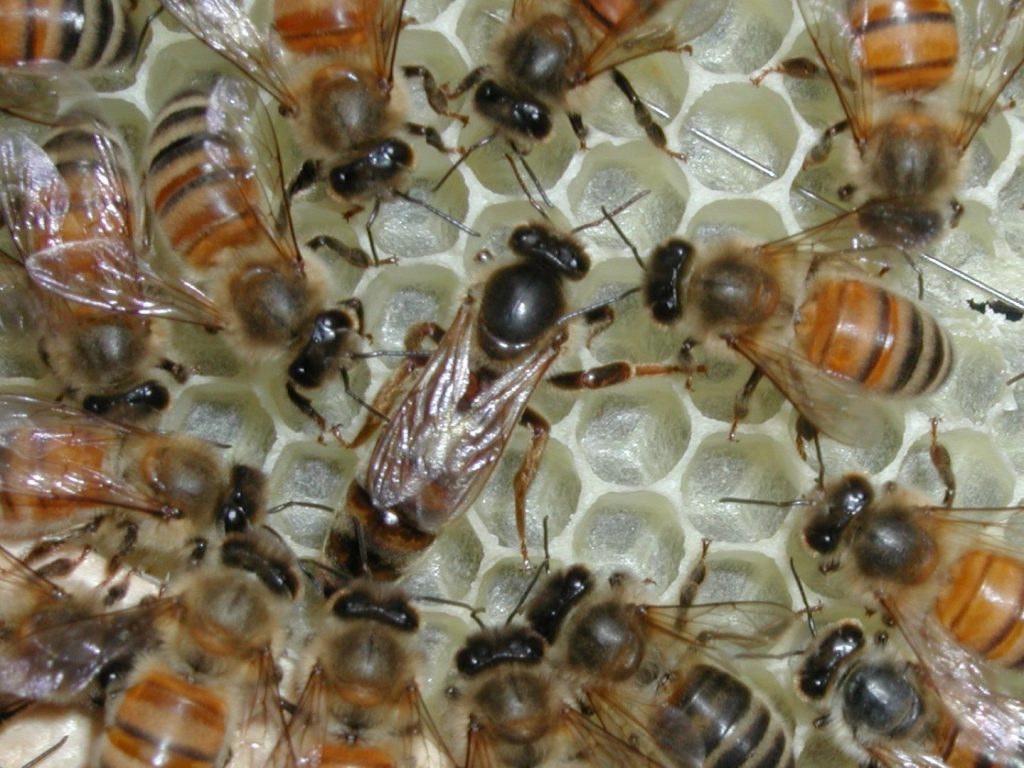 The queen bee is able to control the sex of each egg she lays. She lays fertilised eggs in small cells in the honey combs to produce worker bees (non-reproductive females) and unfertilised eggs in larger cells to produce drones (males).