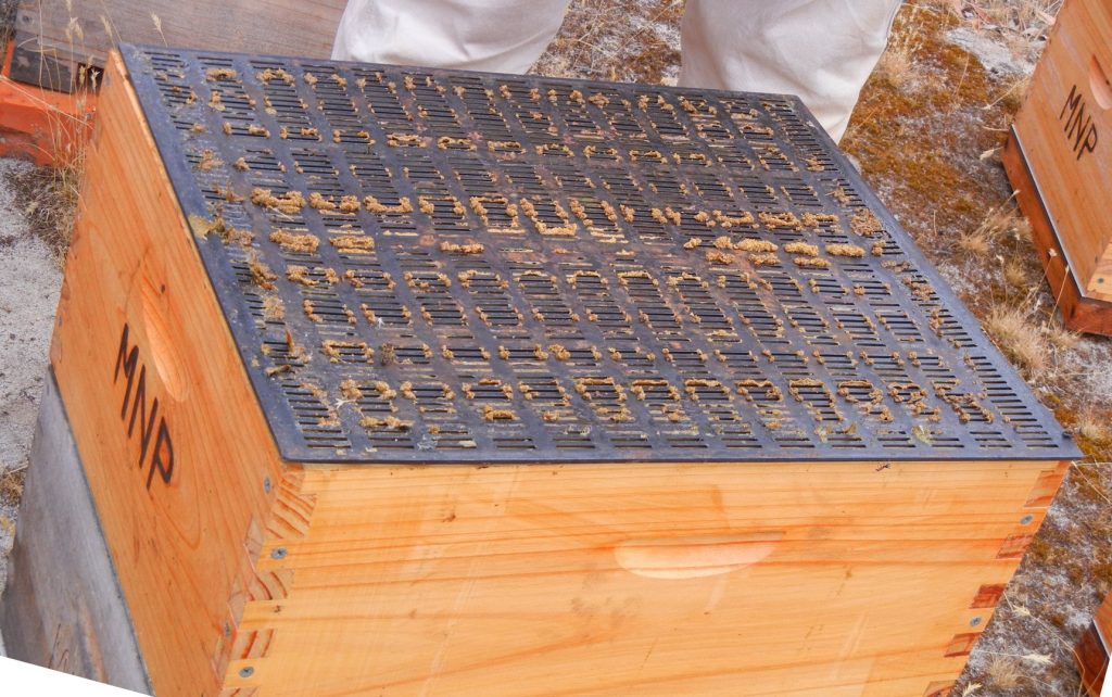 Propolis mat with propolis deposited by honey bees.